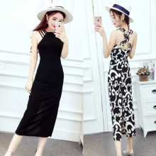 2017新款性感时尚气质针织露背吊带交叉背心礼服修身长款连衣裙女
