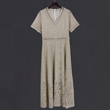 优雅淑女显瘦全蕾丝V领连衣裙高腰收腰显身材及膝长款多色I4M