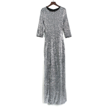 欧美风侧边开叉包臀修身7分袖连衣裙全亮片闪亮珠片礼服长裙