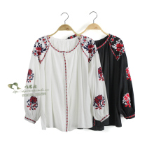包邮 唯思淘 新款民族风女装刺绣花灯笼袖长袖衬衫女棉麻宽松C415