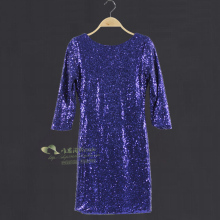 唯思淘 欧美闪亮亮片圆领后V修身包臀7分袖连衣裙 礼服裙J113