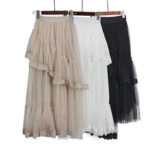 春季层次荷叶边半身裙女蓬蓬裙长裙不规则裙摆蛋糕裙纱裙B198