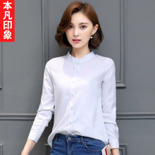 本凡印象2016秋韩版新款女装ol职业立领直筒修身显瘦纯色长袖衬衫