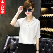 本凡印象夏装新款韩版女装蝙蝠袖七分袖纯色百搭个性衬衫衬衣潮