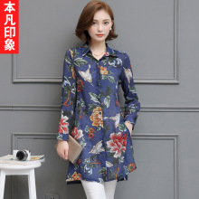 本凡印象衬衫女2016秋季中长款休闲女装宽松大码长袖V领白衬衣