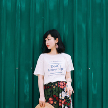 CREAMCHILD春夏原创设计独家自制复古宽松字母圆领白色纯棉T恤女