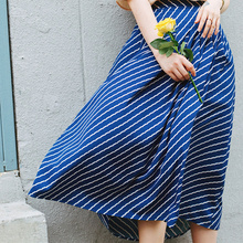 CREAMCHILD原创设计独家自制夏日文艺海军风条纹蓝色中长款半身裙