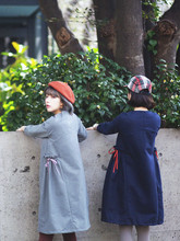 CREAMCHILD秋冬原创设计自制纯色文艺清新丝带蝴蝶结磨毛呢连衣裙