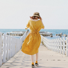 CREAMCHILD17夏原创设计独家自制夏日露背蝴蝶结清新棉麻连衣裙女