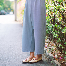 CREAMCHILD原创设计独家自制日系古着感清新格子显瘦高腰阔腿裤女