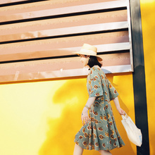 CREAMCHILD原创设计独家自制日系古着感少女向日葵抹茶色连衣裙女