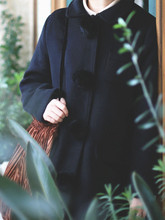 CREAMCHILD冬原创设计定制纯色复古娃娃领中长款羊毛呢毛球大衣女