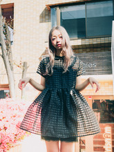 CREAMCHILD15夏季新款原创设计娃娃领花边复古格纹欧根纱连衣裙