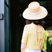 CREAMCHILD原创设计独家自制纯色蝴蝶结绑带显瘦修身T恤女柠檬黄
