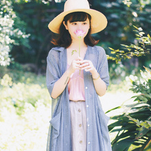 CREAMCHILD17夏原创设计独家自制清新小格子雪纺长款开衫防晒衫女
