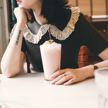 CREAMCHILD17春夏新款原创设计日系文艺花边领纯棉打底长袖T恤女