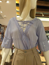 HE 17春夏新品日系后背绑带V领衬衫 上衣