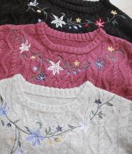 2016秋冬新品 日本日单森林系甜美复古刺绣碎花宽松圆领毛衣