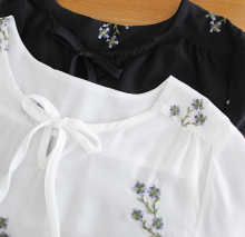 2017春夏新品 日本日单森林系甜美复古刺绣碎花雪纺衫