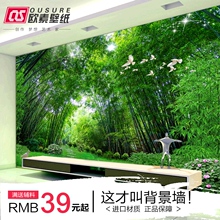 欧素电视背景墙纸 客厅卧室沙发无缝无纺布壁画壁纸 简约竹林风光