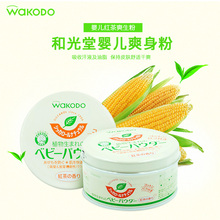 日本原装Wakodo和光堂婴儿爽身粉植物玉米粉宝宝痱子粉带粉扑120g