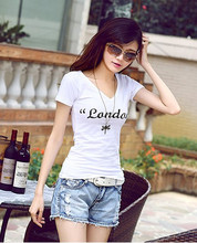 衣衣时尚2016 夏季新款韩版印花V领纯棉短袖修身t恤女春季打底衫