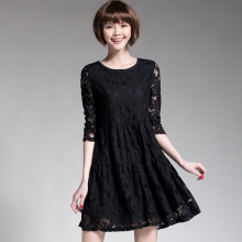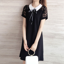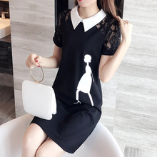 2017加肥加大码女装春装新款宽松200斤胖mm显瘦中长款蕾丝连衣裙