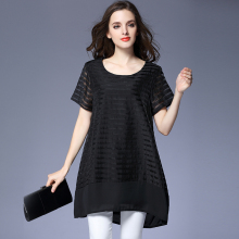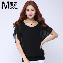 大码女装胖妹妹夏装2017新款宽松遮肚雪纺衫加肥加大胖mm短袖t恤