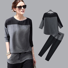 大码女装套装胖MM春装新款加肥加大码宽松运动休闲套装卫衣两件套