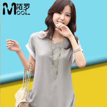 加肥加大码女装胖mm夏装短袖t恤女上衣中长款宽松200斤显瘦雪纺衫