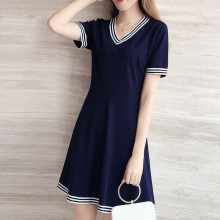 大码夏装女胖mm2017新款连衣裙短袖胖妹妹宽松遮肚子V领显瘦A字裙