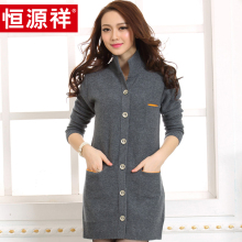 恒源祥羊毛衫女士开衫毛衣女秋冬韩版修身中长款针织衫女连衣裙