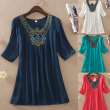 2015夏季民族风宽松女装衬衫中长款女士薄棉麻中长款上衣大码T恤
