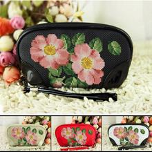 新款丝线精品十字绣钱包化妆包零钱包卡包女款手包钥匙包粉玫瑰