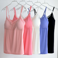 莫代尔蕾丝可调节肩带性感蕾丝打底衫带胸垫吊带背心 女士内衣
