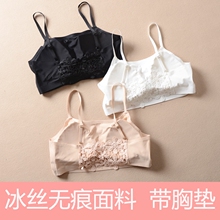 蕾丝美背透气速干冰丝一片无痕抹胸裹胸女短款半截吊带背心带胸垫