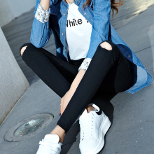 2017春装新款修身显瘦弹力外穿打底裤韩版薄款破洞小脚裤子女学生
