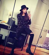 韩版春秋薄款外穿不加绒百搭紧身小脚裤黑色显瘦九分破洞打底裤女