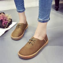 春女鞋2017新款休闲防滑平跟平鞋鞋软底黑色绑带工作鞋小皮鞋单鞋