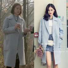 未来的选择尹恩惠罗未来同款毛呢大衣加棉秋冬羊毛绒外套水蓝色