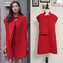 好先生江疏影江莱明星同款羊毛呢外套红色无袖羊绒大衣披风斗篷女