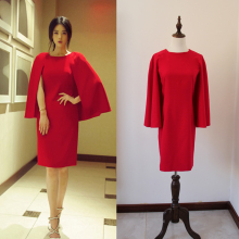 2017夏新款欢乐颂蒋欣樊胜美同款欧美红色斗篷披肩连衣裙修身显瘦