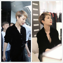 2017春秋季新款黑色丝绒天鹅绒衬衫女明星海清明星同款修身百搭OL