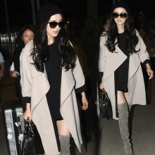 2017秋冬新款女装大衣杨幂明星同款黑色毛呢大衣外套显瘦欧洲站