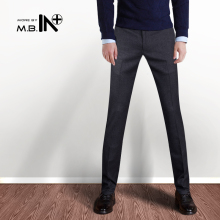 MBIN春秋高弹力舒适莱卡针织修身韩版男商务休闲小脚西裤款斜纹