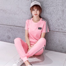 休闲运动套装女夏天2017新款时尚女款短袖长裤中学生跑步两件套潮