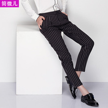 简微儿欧美2016秋季 女士条纹九分长裤西装裤小脚职业OL休闲裤
