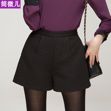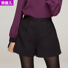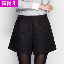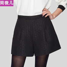 2017秋装新款高腰提花阔腿短裤女大码显瘦外穿秋冬A字短裤靴裤子
