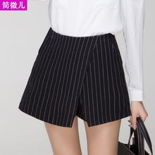 欧美2016秋季新款高腰阔腿短裤裙女 秋冬职业OL条纹大码显瘦裤子