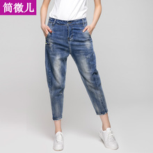 牛仔裤女 2017夏季时尚宽松九分裤八分裤吊裆裤跨裤潮哈伦裤女裤